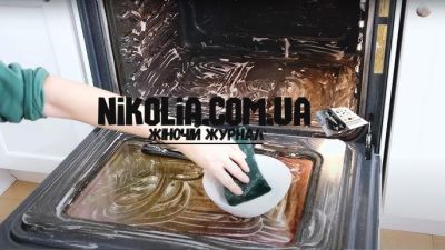 - Жир после жарки и копчения – паста из пищевой соды (масса 1:2, сода и вода), выдержать 15–20 минут, затем мягко потереть.